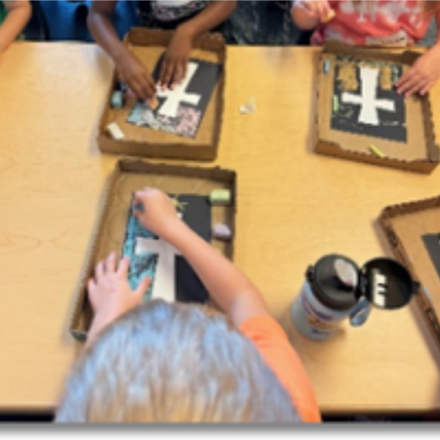 The children create artwork that reinforces the lesson and is often a way for them to return home and share the lesson with their parents.